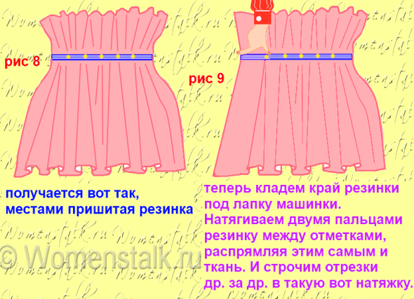 Отобразим этот способ на картинке, чтобы все понятно было. Весь этап работы на примере вот этого платья с резинкой на талии.