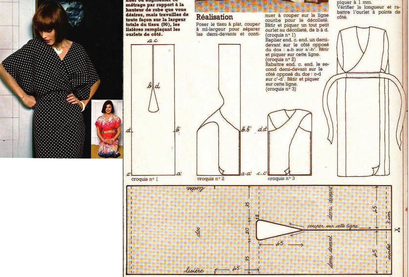 Платье-халат очень похоже на обычный халат, поэтому сшить его можно взяв за основу выкройку для этого домашнего предмета гардероба. Если поэкспериментировать с выкройкой: изменить длину, добавить застёжки, ленты, обработать края бейкой — то можно изготовить невероятно оригинальную модель, которой не будет равных. Но нужно учесть, что для плотных тканей нужно подобрать дополнительную застёжку.