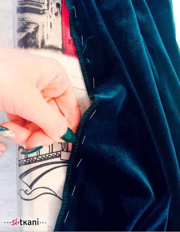 Подворачиваем нижний край, пришиваем его потайными стежками или выполняем машинный шов.