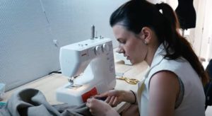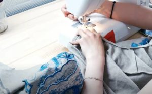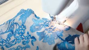 - Сшейте заготовки. Лучше всего это делать специальной иголкой для швейной машинки №70 или №80. Всё дело в том, что шифон очень тонкий, и обычной иглой можно только испортить ткань. Сначала обработайте лиф с плеч, затем — с боков