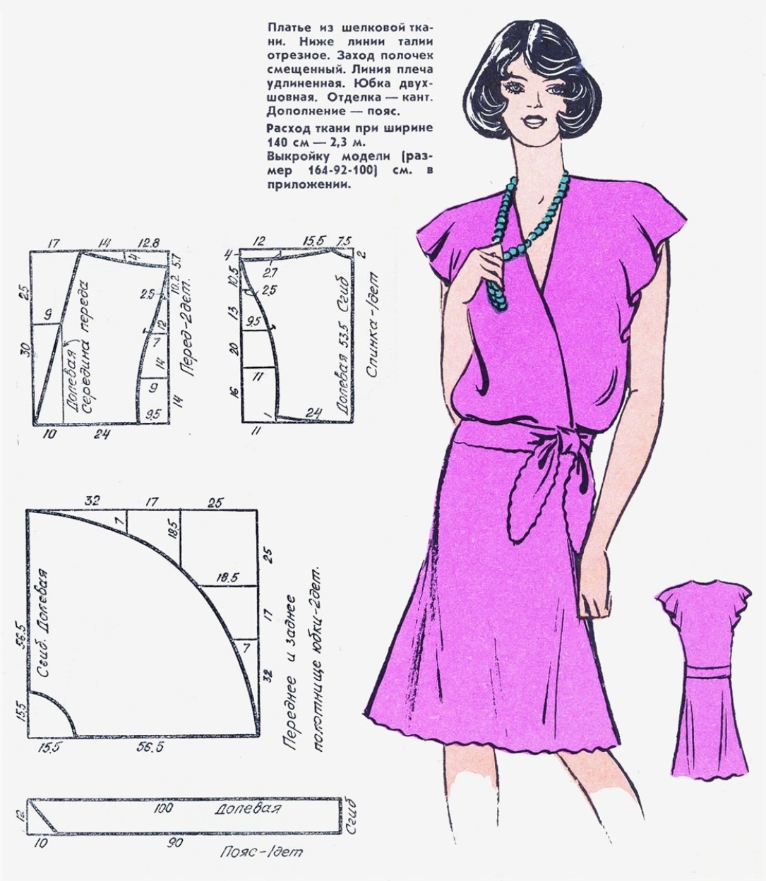 Чтобы изготовить выкройку платья с запахом, нужно выполнить моделирование базовой выкройки, используя методику, описанную выше.